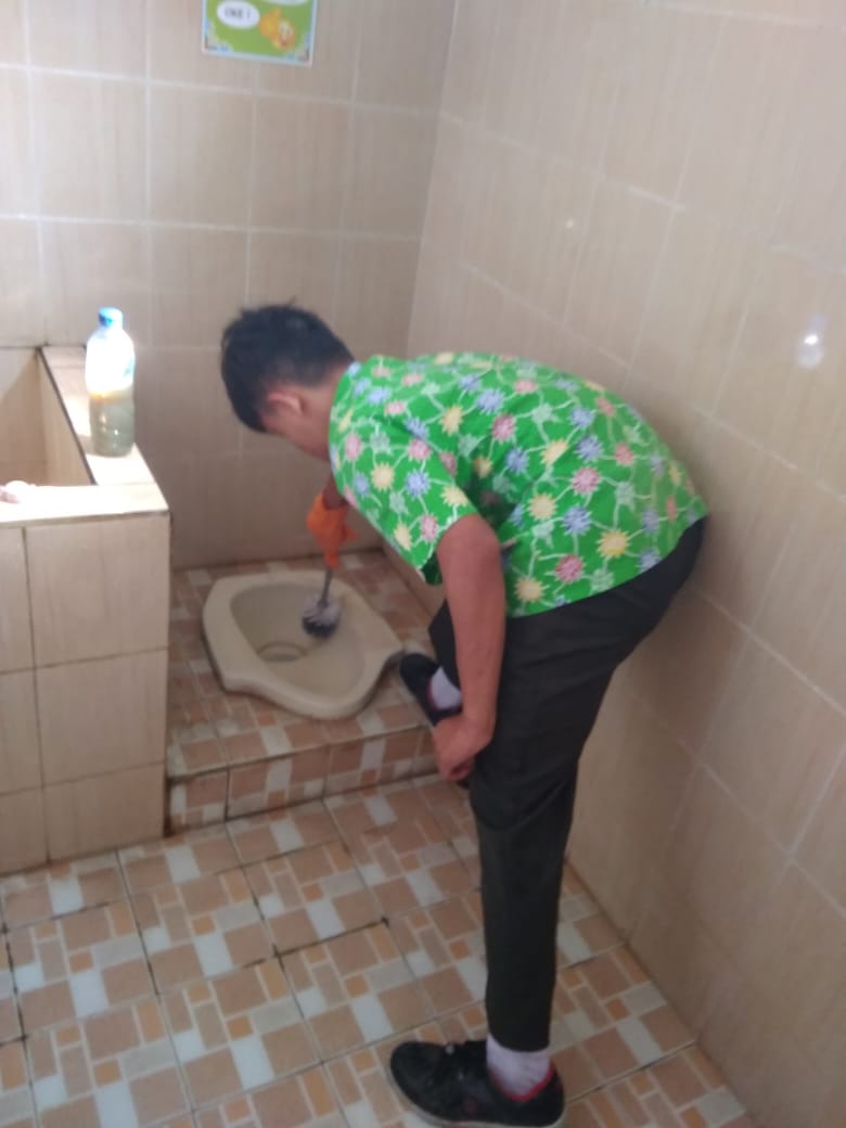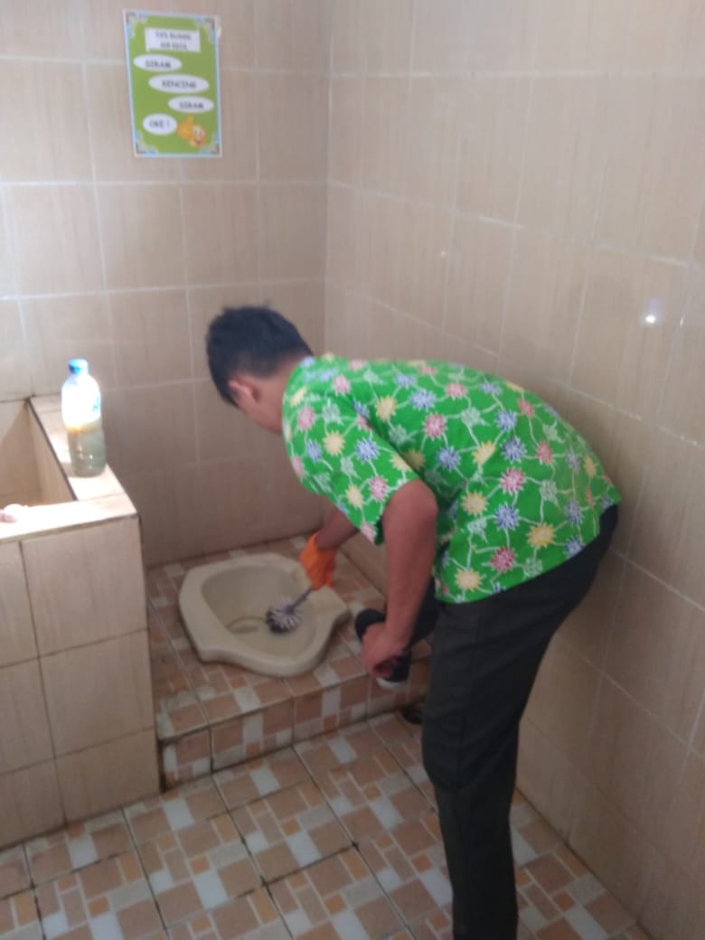 Menyikat toilet agar bersih