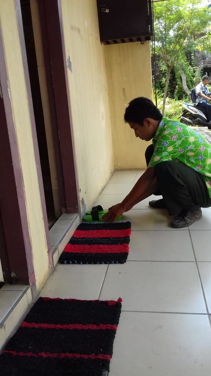 Merapikan sandal klompen dan mengganti keset dengan yang bersih
